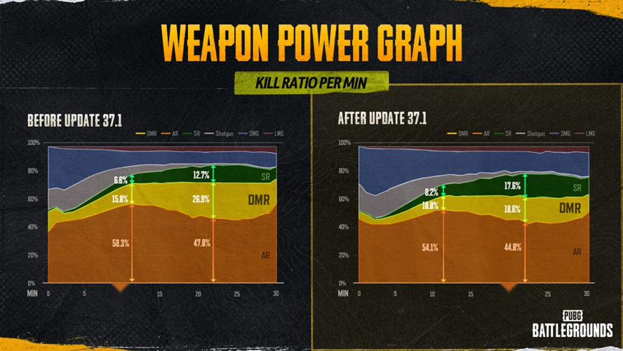 Команда разработчиков PUBG поделилась подробным обзором влияния ребаланса DMR, внедренного в обновлении 37.1. В рамках исследования были проанализированы ключевые игровые показатели до и после внесения изменений, что позволило оценить их влияние на игровую динамику и баланс.