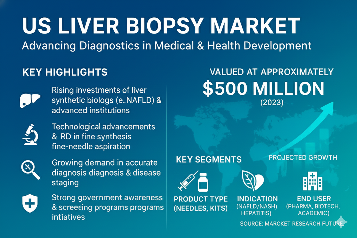 The long-term outlook for the US Liver Biopsy Market remains strong, driven by rising chronic liver disease prevalence, increasing transplant volumes, and continuing demand for precise histological diagnostics. Forecasts indicate sustained growth as new therapeutic developments (for NASH, liver cancer, fibrosis reversal, etc.) rely on biopsy-confirmed endpoints. This anticipated trajectory is outlined in US Liver Biopsy Market Projections reflecting expansion across clinical, research, and diagnostic domains.