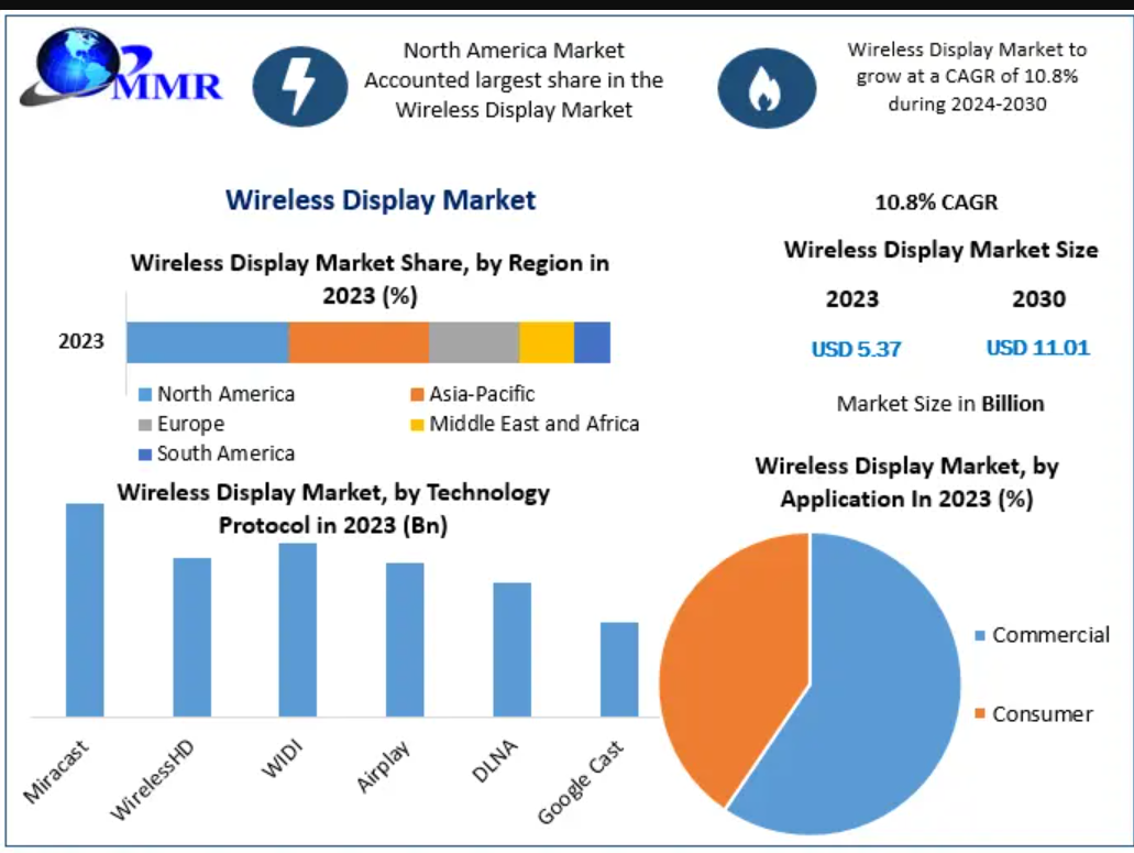 Maximize Market Research is a Business Consultancy Firm that has published a detailed analysis of the “ Wireless Display Market”. The report includes key business insights, demand analysis, pricing analysis, and competitive landscape. The analysis in the report provides an in-depth aspect at the current status of the Wireless Display Market.