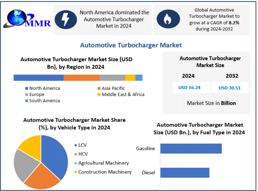The global Automotive Turbocharger Market was valued at USD 16.24 billion in 2024 and is projected to reach approximately USD 30.51 billion by 2032, growing at a CAGR of 8.2% between 2025 and 2032. This strong expansion is driven by rising demand for fuel-efficient vehicles, tightening emission regulations, and continuous technological innovation across the automotive sector.