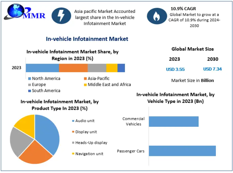 The In-vehicle Infotainment Market was valued at USD 3.55 billion in 2023 and is projected to reach USD 7.34 billion by 2030, expanding at a CAGR of 10.9% during 2024–2030. This robust growth is driven by the rapid digitalization of vehicles, increasing demand for connected services, and rising consumer expectations for enhanced in-car experiences.