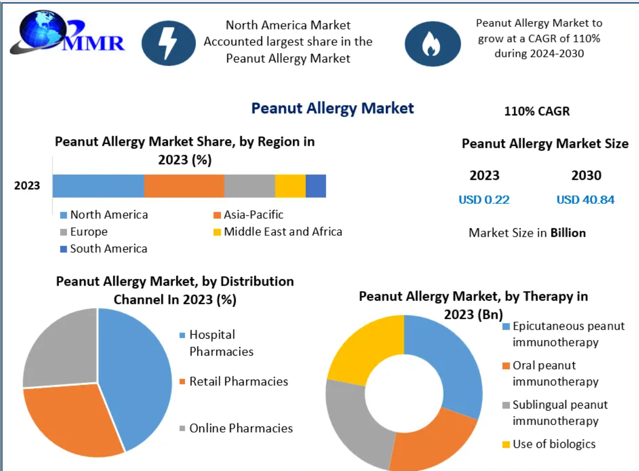 Global Peanut Allergy Market expected to hit USD 40.84 Bn by 2030 from USD 0.22 Bn in 2023 at a CAGR of 110% during the forecast period