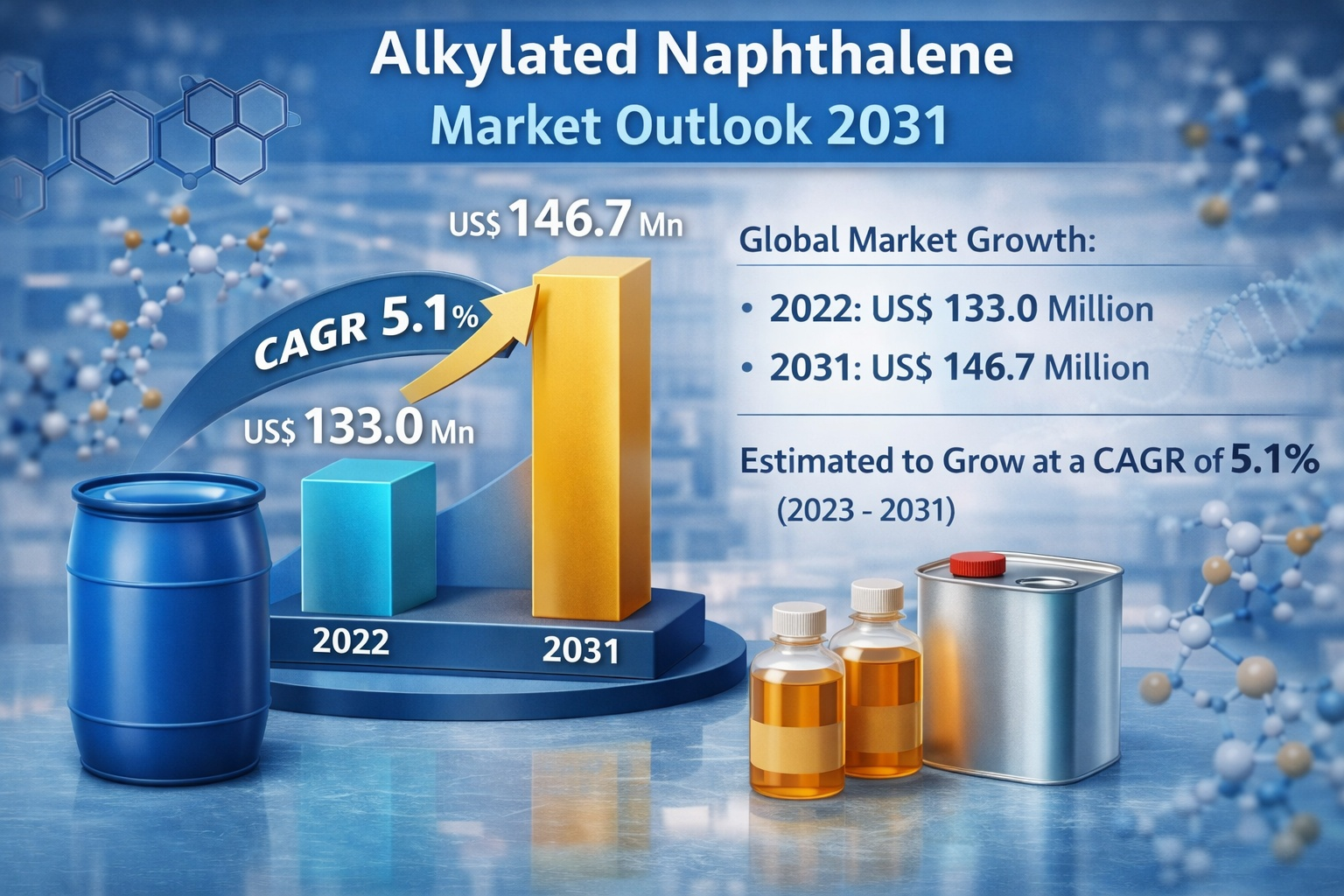 The global alkylated naphthalene market is witnessing stable and sustained growth, supported by rising automobile production and continuous advancements in fluid technologies. Valued at US$ 133.0 million in 2022, the market is projected to reach US$ 146.7 million by the end of 2031, expanding at a CAGR of 5.1% from 2023 to 2031. While the market may appear niche in size, its importance across automotive, industrial lubrication, and specialty chemical applications makes it strategically significant.