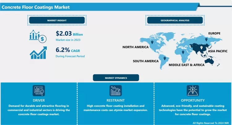 “According to a new report published by Introspective Market Research, Concrete Floor Coatings Market by Resin Type, Application, and End-Use Industry, The Global Concrete Floor Coatings Market Size Was Valued at USD 2.03 Billion in 2023 and is Projected to Reach USD 3.299 Billion by 2032, Growing at a CAGR of 6.20% .”