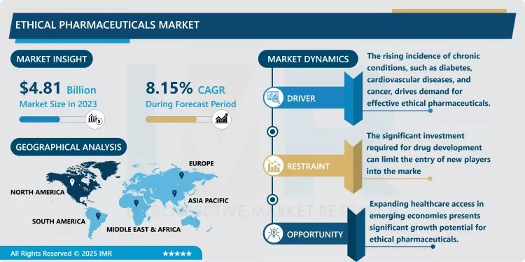 “According to a new report published by Introspective Market Research, titled, Ethical Pharmaceuticals Market by Product Type, Dosage Form, and Distribution Channel , The Global Ethical Pharmaceuticals Market Size Was Valued at USD 4.81 Billion in 2023 and is Projected to Reach USD 9.21 Billion by 2032, Growing at a CAGR of 8.15% from 2024–2032.”