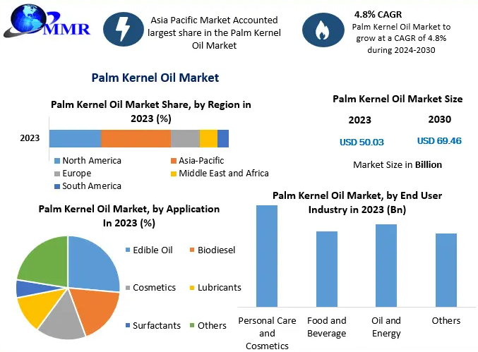 The global Palm Kernel Oil Market is witnessing sustained growth as demand accelerates across multiple end-use industries, including food and beverages, personal care, cosmetics, and energy. Palm kernel oil, derived from the kernel of the oil palm fruit (Elaeis guineensis), has emerged as a vital raw material due to its cost-effectiveness, functional stability, and versatile application profile. According to recent market analysis, the Palm Kernel Oil Market was valued at US$ 50.03 billion in 2023 and is projected to expand at a compound annual growth rate (CAGR) of 4.8% during the forecast period. By 2030, the market is expected to reach US$ 69.46 billion, supported by expanding industrial usage, rising population, and evolving consumer preferences.