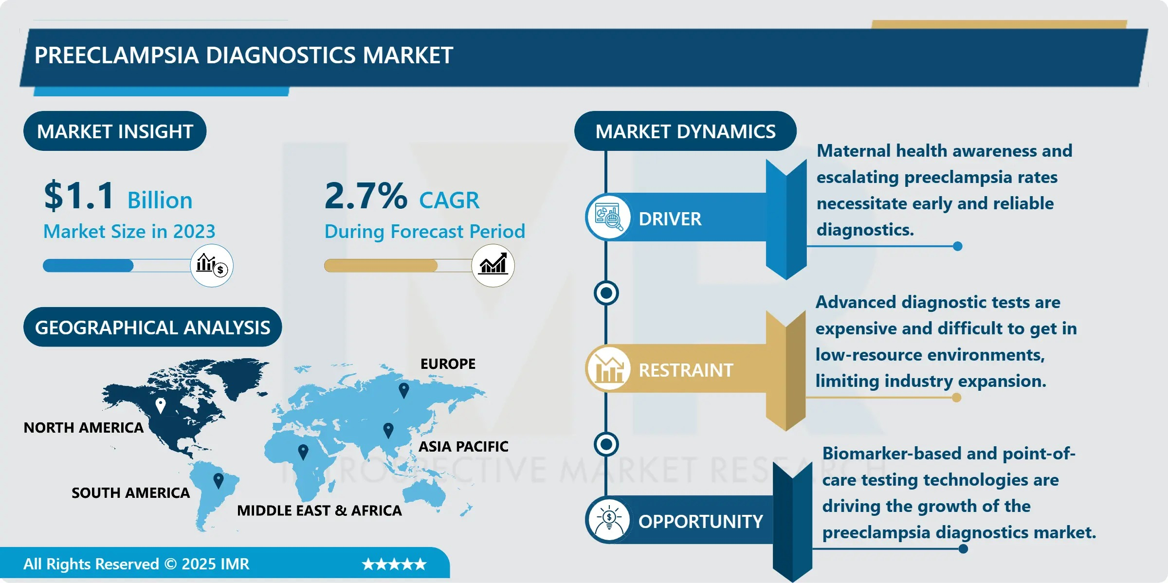 “According to a new report published by Introspective Market Research, Preeclampsia Diagnostics Market by Test Type, End User, and Region , The Global Preeclampsia Diagnostics Market Size Was Valued at USD 1.1 Billion in 2023 and is Projected to Reach USD 1.4 Billion by 2032 , Growing at a CAGR of 2.7% from 2024–2032 .”