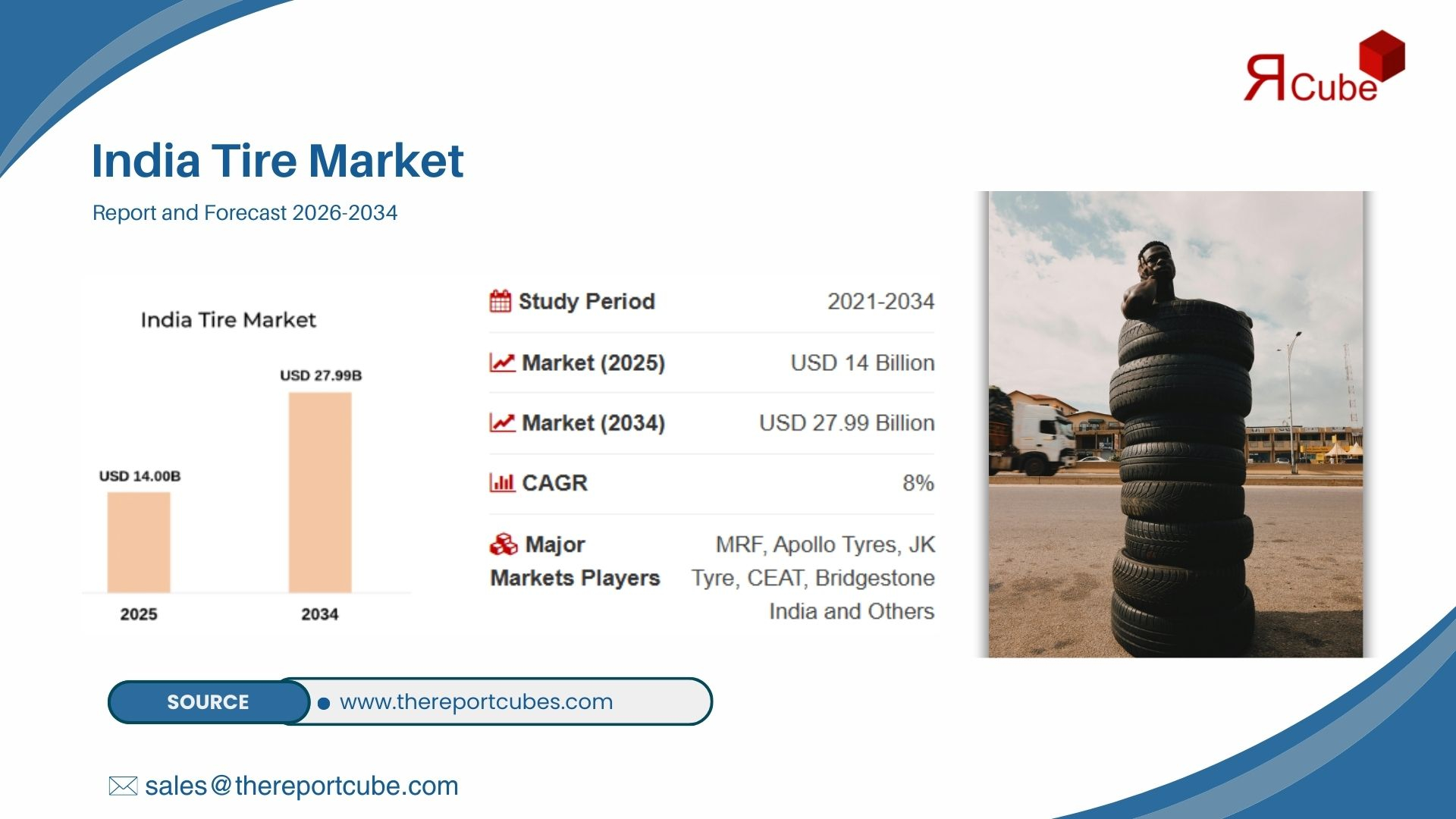 According to the India Tire Market Research Report (2026-2034) by Report Cube, the market was valued at approximately USD 14 Billion in 2025. Based on current industry structure and observed demand patterns, the market is projected to reach USD 27.99 Billion by 2034, expanding at a 8% CAGR during the forecast timeline.