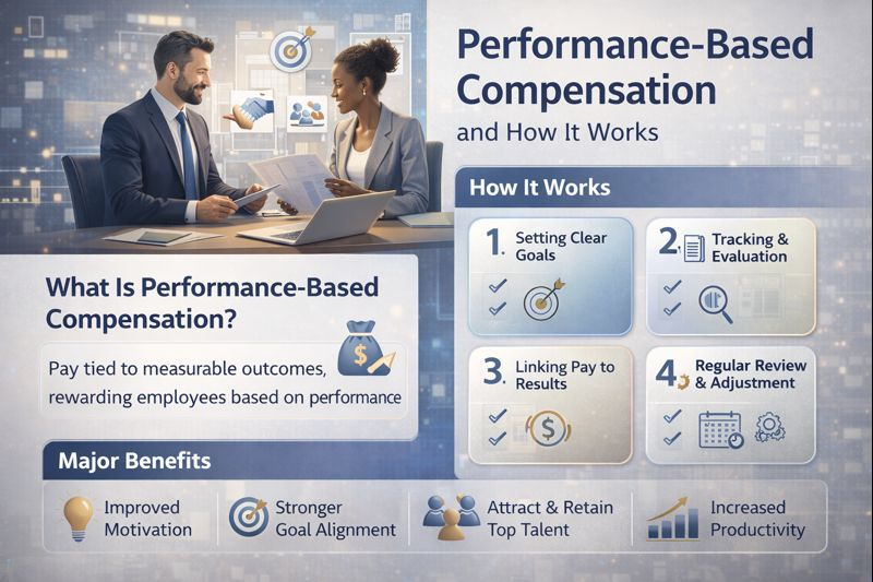 Performance-based compensation is a pay structure in which a portion of an employee’s earnings is tied to measurable performance outcomes. Instead of compensation being solely based on tenure or job title, employees are rewarded for achieving specific goals, targets, or results.