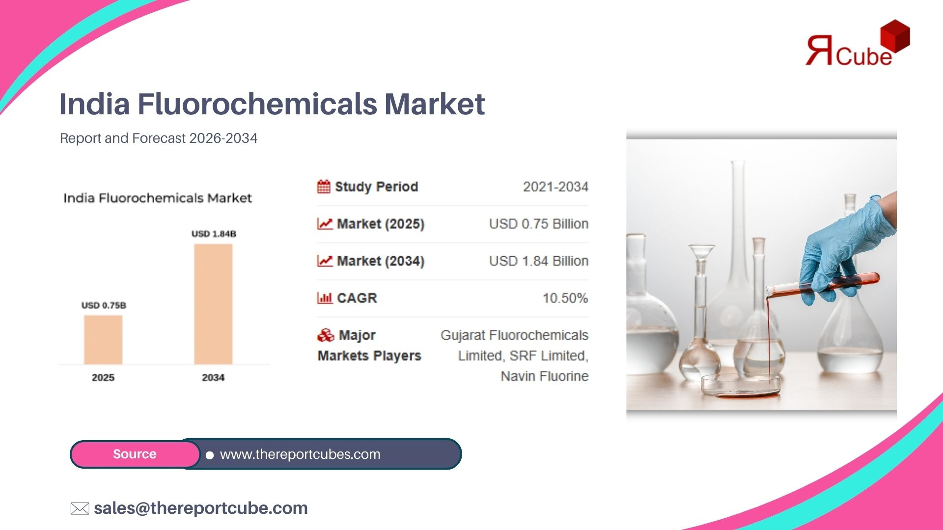 The India Fluorochemicals Market is projected to reach USD 1.84 Billion by 2034, expanding at a compound annual growth rate (CAGR) of 10.50% during the forecast period 2026-2034. According to the latest industry analysis published by The Report Cube, the market was valued at USD 0.75 Billion in 2025. The growth trajectory reflects evolving demand patterns, structural industry expansion, and measurable shifts in supply-demand balance across key regions.