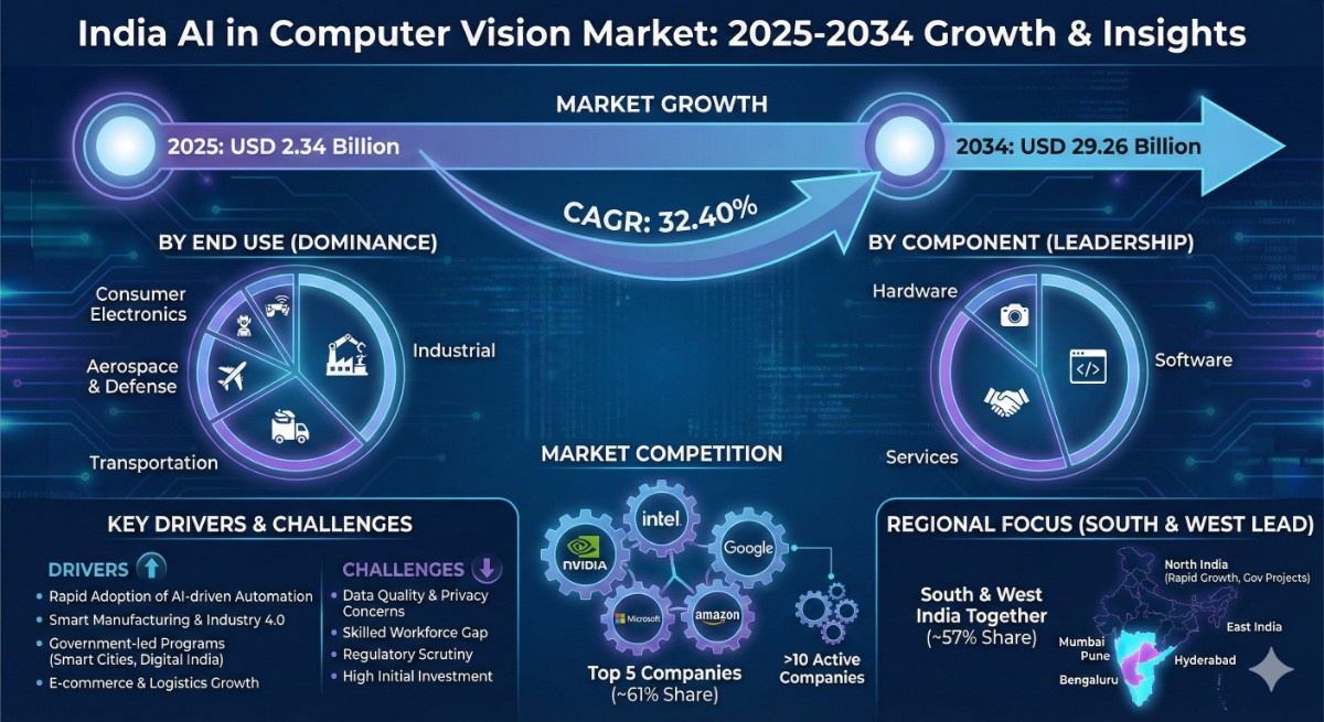 With strong competition among global and regional players, the market is highly fragmented. Discover the major trends shaping the future of the Top 10 India AI in Computer Vision Market companies: