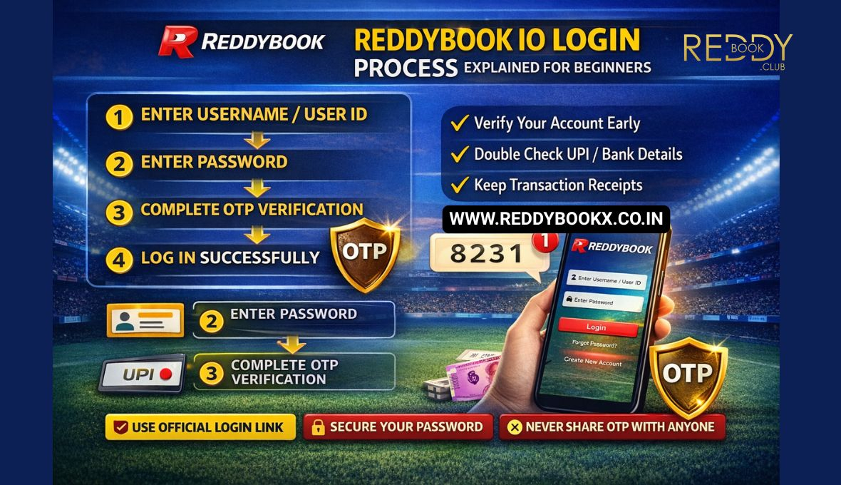 The Reddybook IO login process is simple and beginner-friendly once understood. Users receive credentials from a verified provider, open the IO login page, enter details, and access the betting dashboard. Unlike traditional registrations, accounts are already created, so beginners only need to log in rather than sign up.