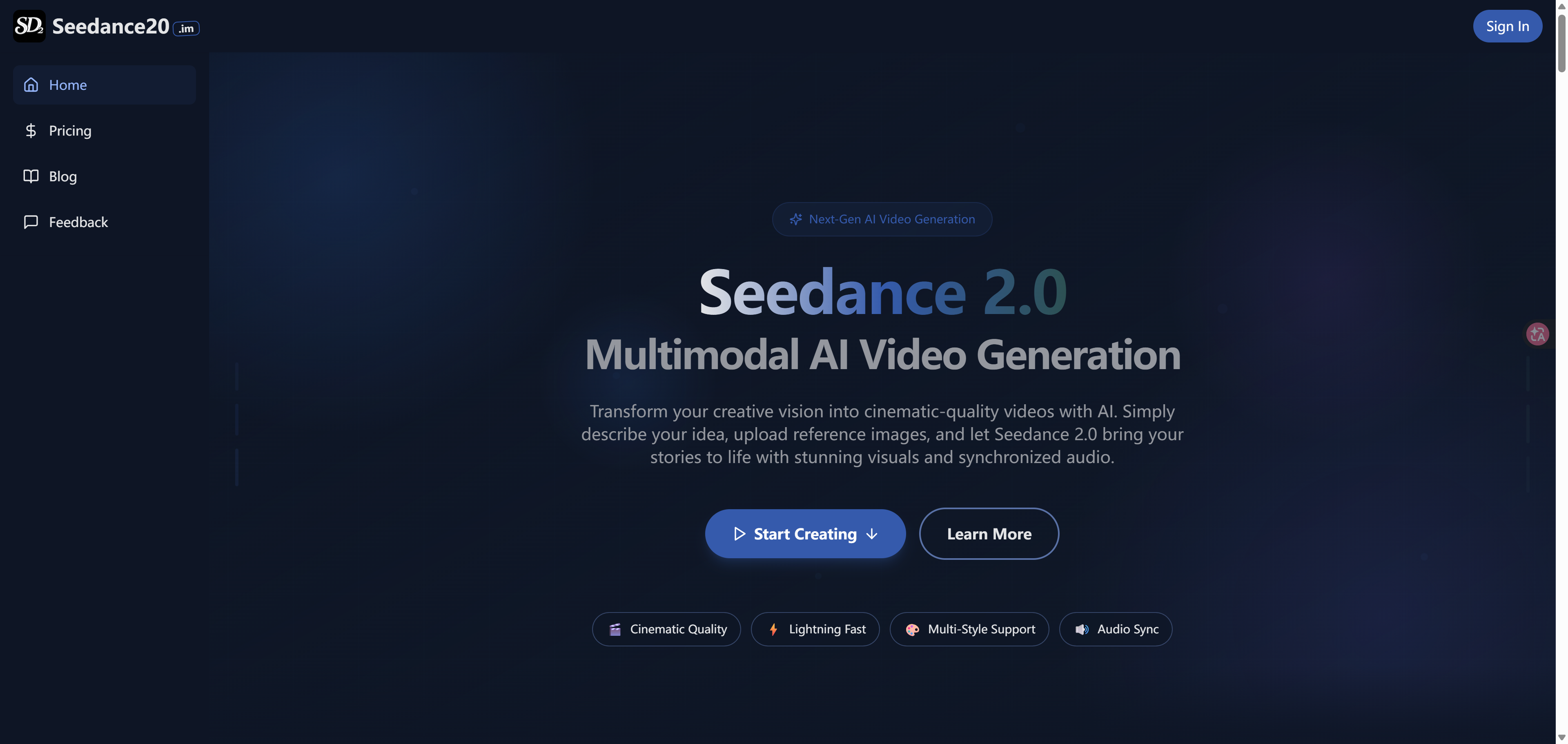 At first glance, Seedance20.im presents a straightforward platform focused on professional and creative video generation: