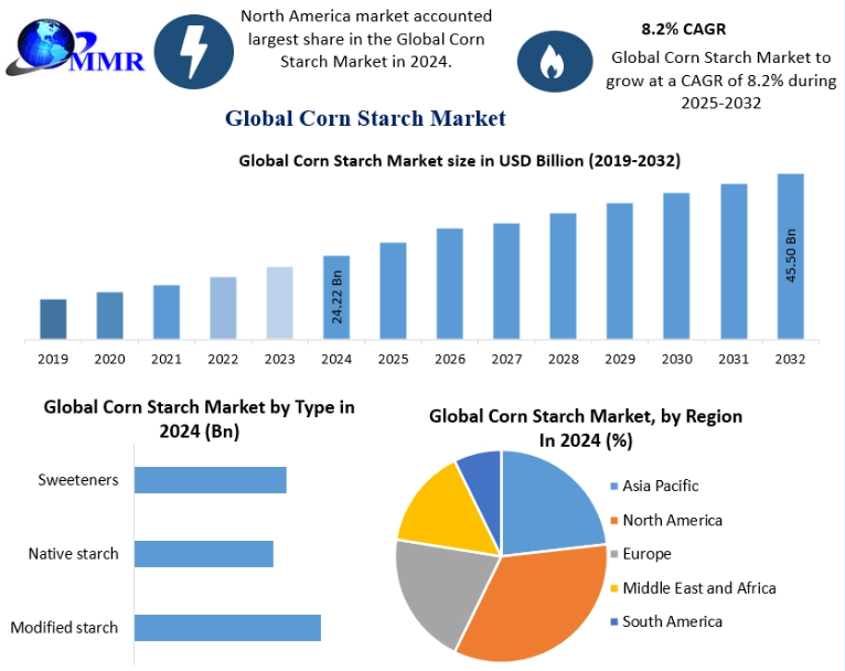 The global corn starch market is analyzed for the period 2025 to 2032.