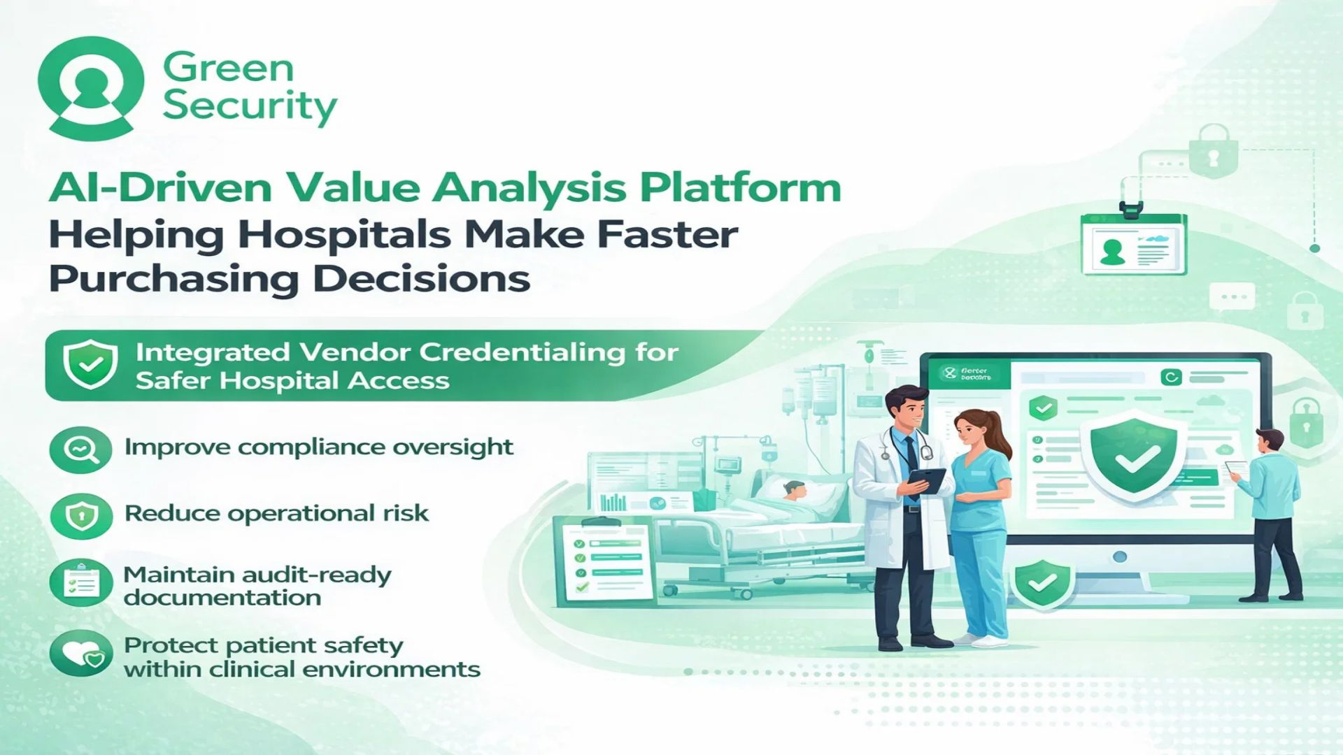 Discover how Green Security’s AI-powered Value Analysis platform helps hospitals accelerate purchasing decisions, improve vendor compliance, and protect millions in healthcare savings.