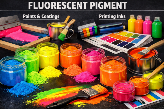 UV Fluorescent pigments are used in printing inks to create high-visibility products. These pigments are sensitive to light and some chemicals, and they fluoresce when exposed to UV radiation, resulting in bright, neon colors with high brilliance. In the graphic arts market, fluorescent pigments are employed to create eye-catching posters, signs, and displays. The vibrant and intense colors produced by fluorescent pigments under UV light can attract attention and are often used for promotional materials.
