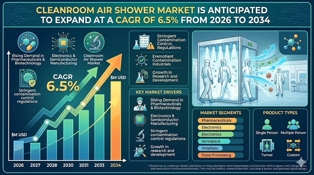 The Cleanroom Air Shower Market Geography plays a crucial role in understanding regional adoption patterns, growth opportunities, and strategic investments. The Cleanroom Air Shower Market is anticipated to expand at a CAGR of 6.5% from 2026 to 2034, driven by industrial expansion, regulatory compliance, and technological advancement in multiple regions worldwide.