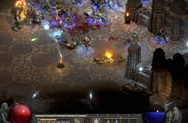 Unlike many modern RPGs, dying in Diablo II has meaningful consequences. When your character dies, your equipment remains on your corpse at the location where you fell. You respawn in town with nothing equipped and must return to your body to retrieve your items.