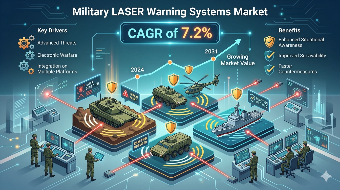 The global defense sector is undergoing rapid modernization with increasing investments in advanced threat detection and countermeasure technologies. The Military LASER Warning Systems Market is a critical segment within this landscape, providing real-time detection of laser-based threats such as rangefinders, target designators, and laser-guided weapons. These systems are widely deployed across land vehicles, aircraft, and naval platforms to enhance situational awareness and survivability in modern combat scenarios.