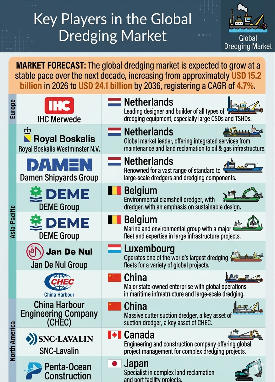 The dredging market remains moderately consolidated, with key players competing based on technological capabilities, project execution efficiency, and environmental compliance.
