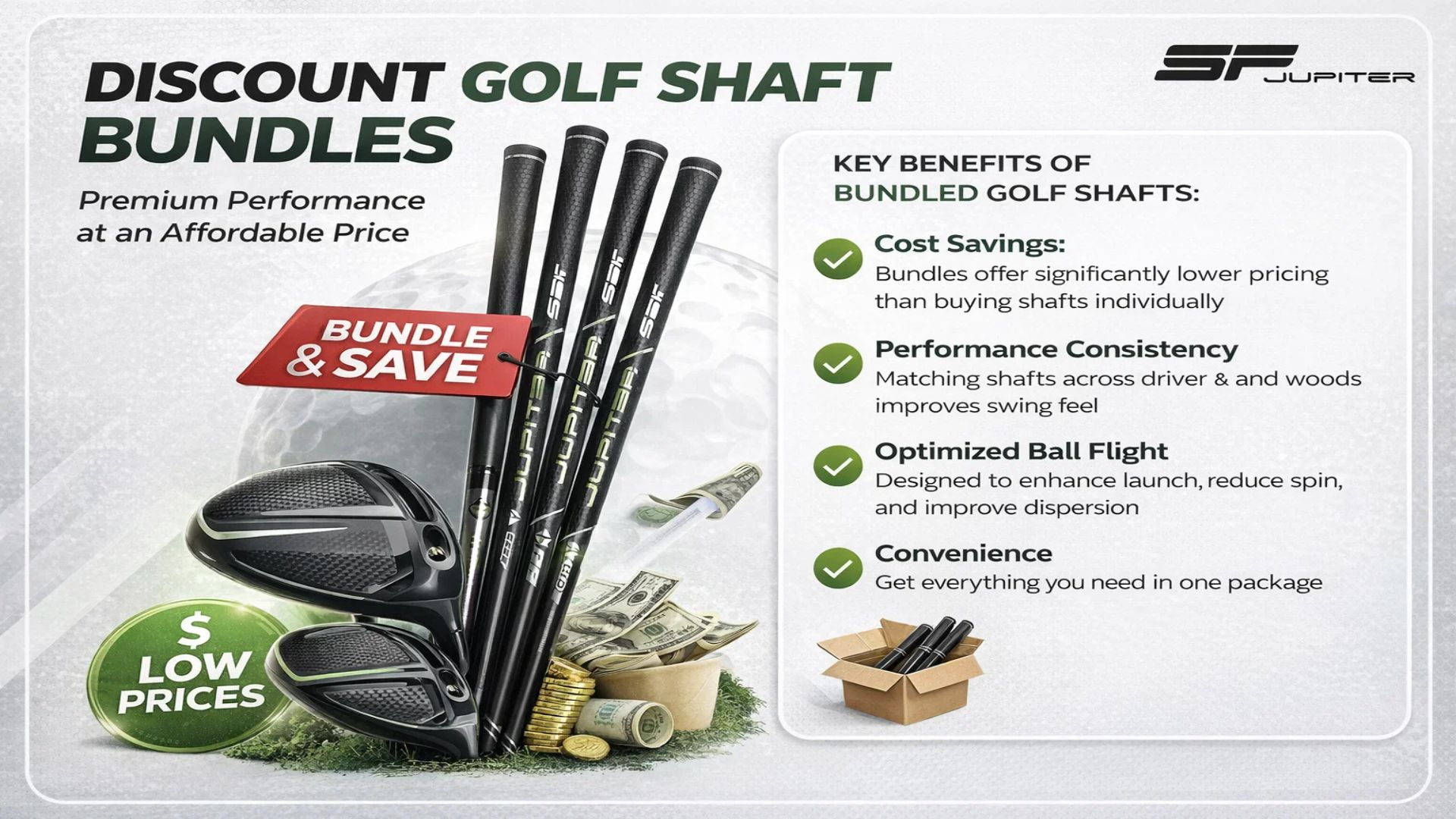 Choosing a discount golf shaft bundle is more than just a cost-saving decision—it's a performance upgrade. With Steadfast Golf's JUPITER One bundles, you get precision engineering, premium materials, and consistent results across your entire setup.