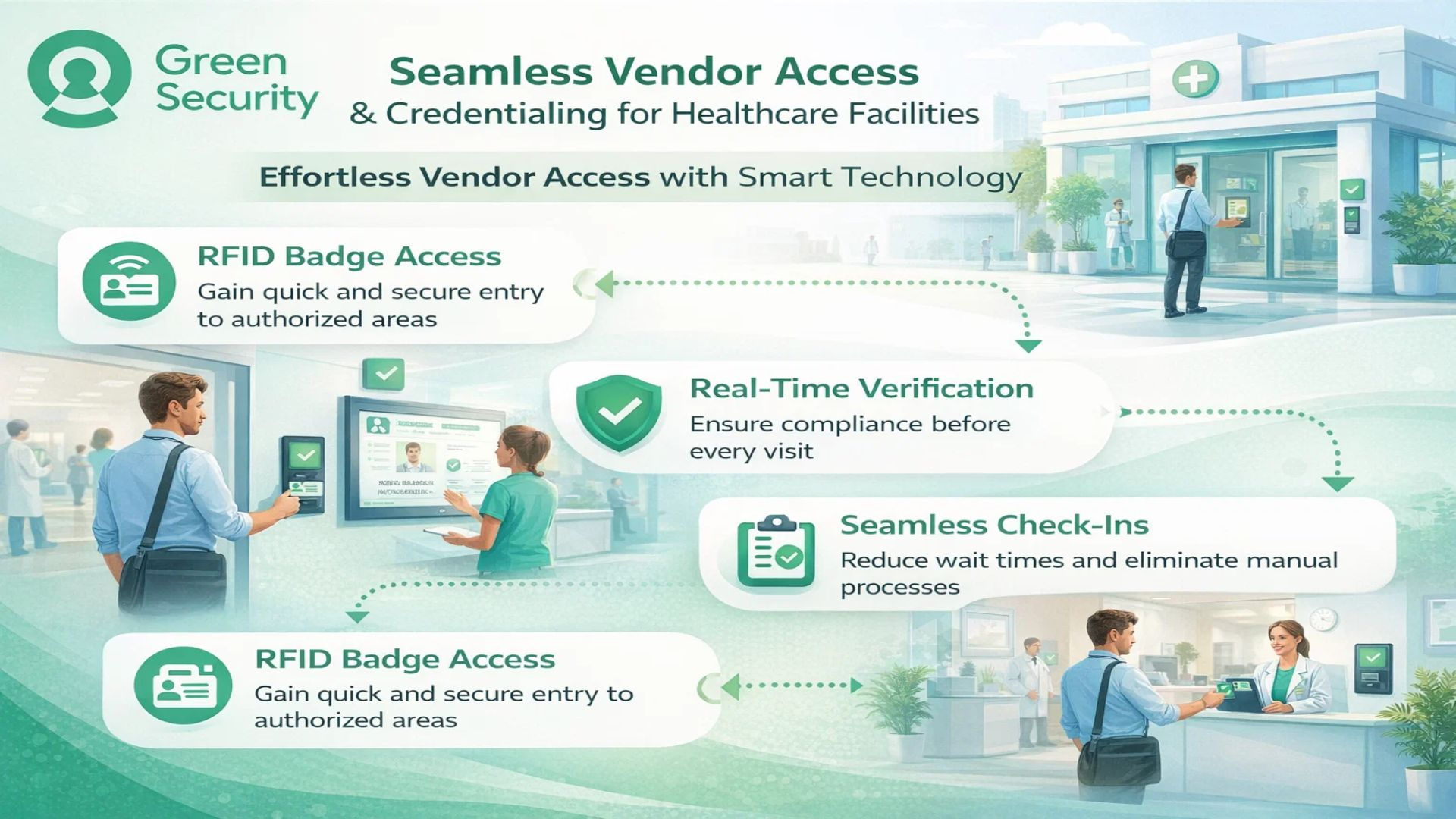 Whether you're a medical sales representative, service provider, or vendor manager, Green Security ensures you can focus on your work without delays at the door.