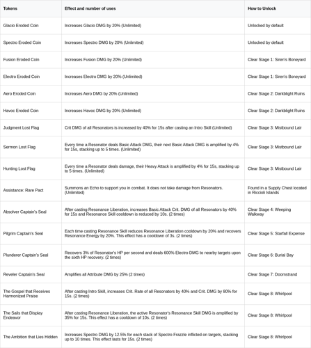 Кроме того, ниже представлена полная таблица уровней, включающая всех 29 резонаторов, доступных в режиме Вопящие Пустоши, для дальнейшего стратегического анализа: