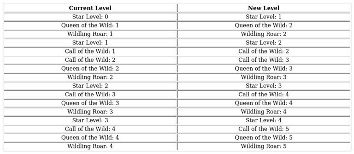 Улучшение умений требует учебников умений, ценного ресурса, который может быстро исчерпаться. Ниже мы предлагаем оптимальный путь улучшения для максимизации исследовательских и экспедиционных умений Натальи эффективно. Помните, что улучшения уровня звезды можно выполнять, как только вы получите необходимые осколки, и не нужно следовать строгой последовательности.