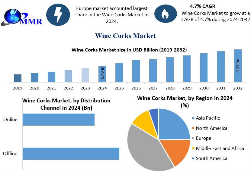 The global Wine Corks Market is poised for steady growth, with its market size valued at USD 6.49 billion in 2024 and projected to reach nearly USD 9.37 billion by 2032, expanding at a CAGR of 4.7% during the forecast period. The market’s upward trajectory is fueled by increasing demand for premium wines, rising environmental awareness, and continuous innovation in cork manufacturing technologies.