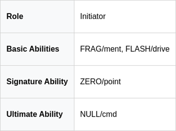 Он приносит три дымовые завесы для перекрытия линий обзора, зажигательную гранату для отказа от пространства, маяк стимуляции, который ускоряет ближайших союзников, и ультимативную орбитальную атаку, которая бомбит целевую область.