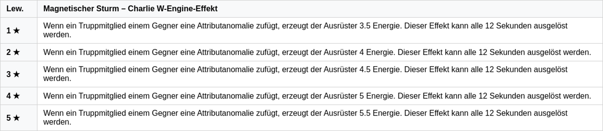 Его центральная особенность — эффект «Перегрузка заряда», который увеличивает восстановление энергии и предоставляет дополнительную энергию при активации аномалий атрибутов.