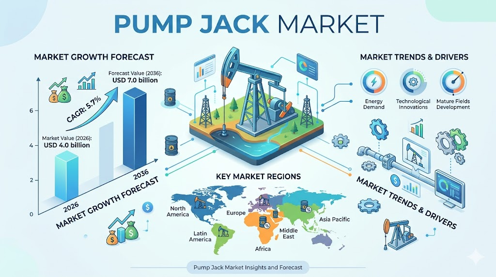 The global Pump Jack Market is witnessing a steady transformation, with demand projected to grow from USD 4.0 billion in 2026 to USD 7.0 billion by 2036, registering a CAGR of 5.7%. This growth is anchored in the increasing need to optimize production from mature oil wells, where declining reservoir pressure necessitates reliable and cost-efficient artificial lift systems.