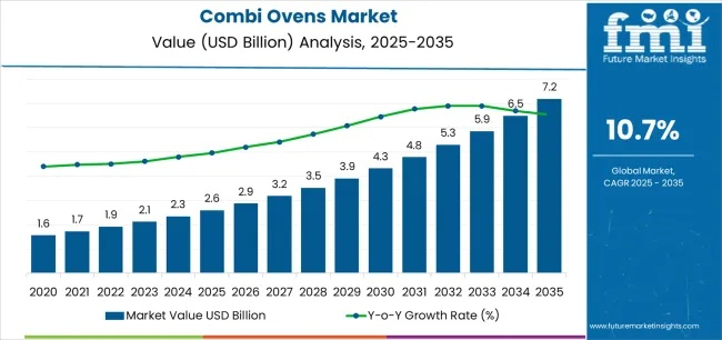 The global Combi Ovens Market is entering a transformative growth phase, projected to expand from USD 2.6 billion in 2025 to USD 7.2 billion by 2035, registering a CAGR of 10.7%. This surge is fueled by rising demand for multifunctional cooking equipment across restaurants, hotels, and catering services seeking efficiency, consistency, and reduced labor dependency.
