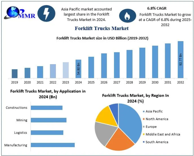 The global Forklift Trucks Market is on a strong growth trajectory, valued at USD 54.80 billion in 2024 and projected to reach USD 92.77 billion by 2032, expanding at a CAGR of 6.8%. As industries accelerate automation and global trade intensifies, forklifts are becoming indispensable across warehouses, factories, and logistics hubs.