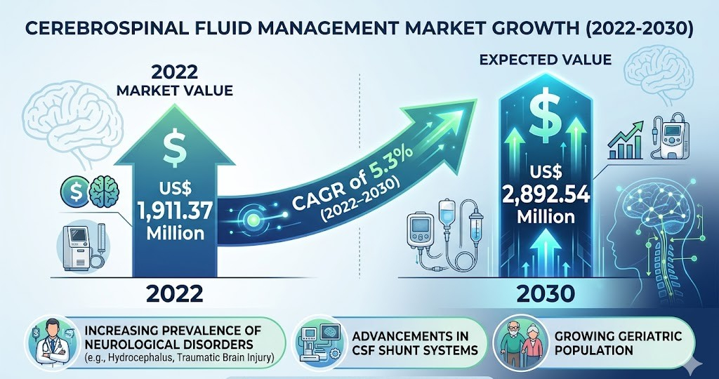 The North America Cerebrospinal Fluid Management Market is closely aligned with global trends, as the overall market was valued at US$ 1,911.37 million in 2022 and is projected to reach US$ 2,892.54 million by 2030, registering a CAGR of 5.3% during the forecast period. The region holds a significant share due to increasing adoption of minimally invasive procedures, ongoing advancements in CSF shunts and drainage systems, and rising healthcare expenditure.