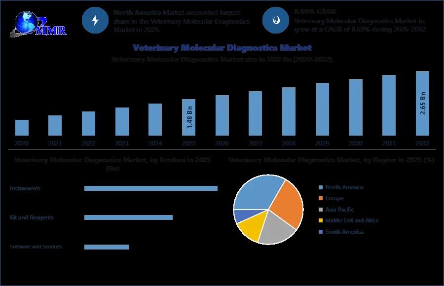 Key growth drivers include the rising incidence of zoonotic diseases, increasing pet ownership, and expanding livestock production worldwide. The need for rapid, sensitive, and specific diagnostic solutions is pushing the adoption of molecular diagnostic technologies in veterinary healthcare. Additionally, advancements in diagnostic platforms, automation, and portable testing devices are enhancing efficiency and accessibility. Opportunities are emerging in the development of point-of-care testing solutions and the integration of digital technologies in veterinary diagnostics. The growing focus on food safety and disease surveillance is also expected to drive market growth in the coming years.