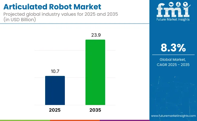 the global articulated robot market is entering a high-growth phase, fueled by rapid advancements in artificial intelligence (AI), Industry 4.0 adoption, and the accelerating need for precision automation across manufacturing ecosystems. According to the latest analysis, the market is projected to grow from USD 10.7 billion in 2025 to USD 23.9 billion by 2035, registering a robust CAGR of 8.3%.