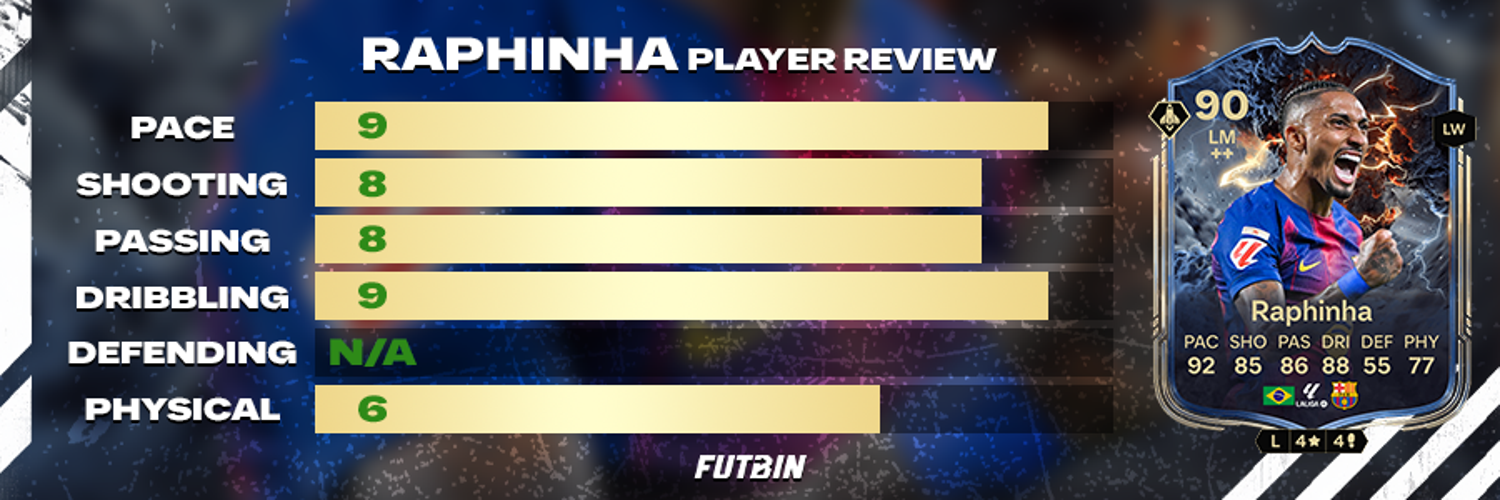 Сравнивая его характеристики с картами, такими как Scream Di Natale на LM, Рафинья хорошо держится с точки зрения стоимости, но ему не хватает сильных связей по химии, что может повлиять на ваши варианты построения команды.