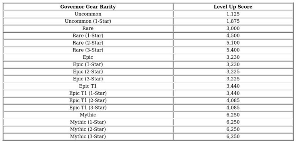 Вы также можете увеличить максимальный счет вашего Снаряжения Губернатора на 1 до 3 очков.