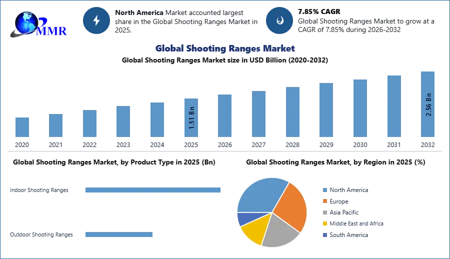 The Shooting Ranges Market size was valued at USD 1.51 Billion in 2025 and the total Shooting Ranges revenue is expected to grow at a CAGR of 7.85% from 2026 to 2032, reaching nearly USD 2.56 Billion.