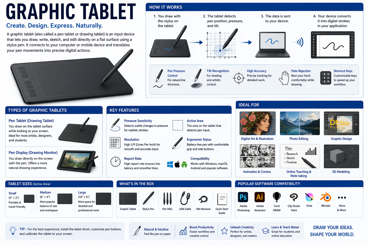 Several factors are propelling the growth of the graphic tablet market, particularly the increased demand for digital art. As traditional art forms give way to their digital counterparts, professionals are investing in technologies that enhance their workflow. The integration of software solutions with hardware capabilities has enabled artists to create more complex designs with greater efficiency. Moreover, the popularity of animation drawing tablets among creatives has expanded the market further, attracting new users who are eager to explore digital animation. However, challenges remain, such as the high cost of some premium graphics tablet devices, which can deter budget-conscious consumers. Additionally, ensuring compatibility across various software platforms is vital for maintaining user satisfaction and fostering continued growth in the industry. The development of pen tablet for designers continues to influence strategic direction within the sector.
