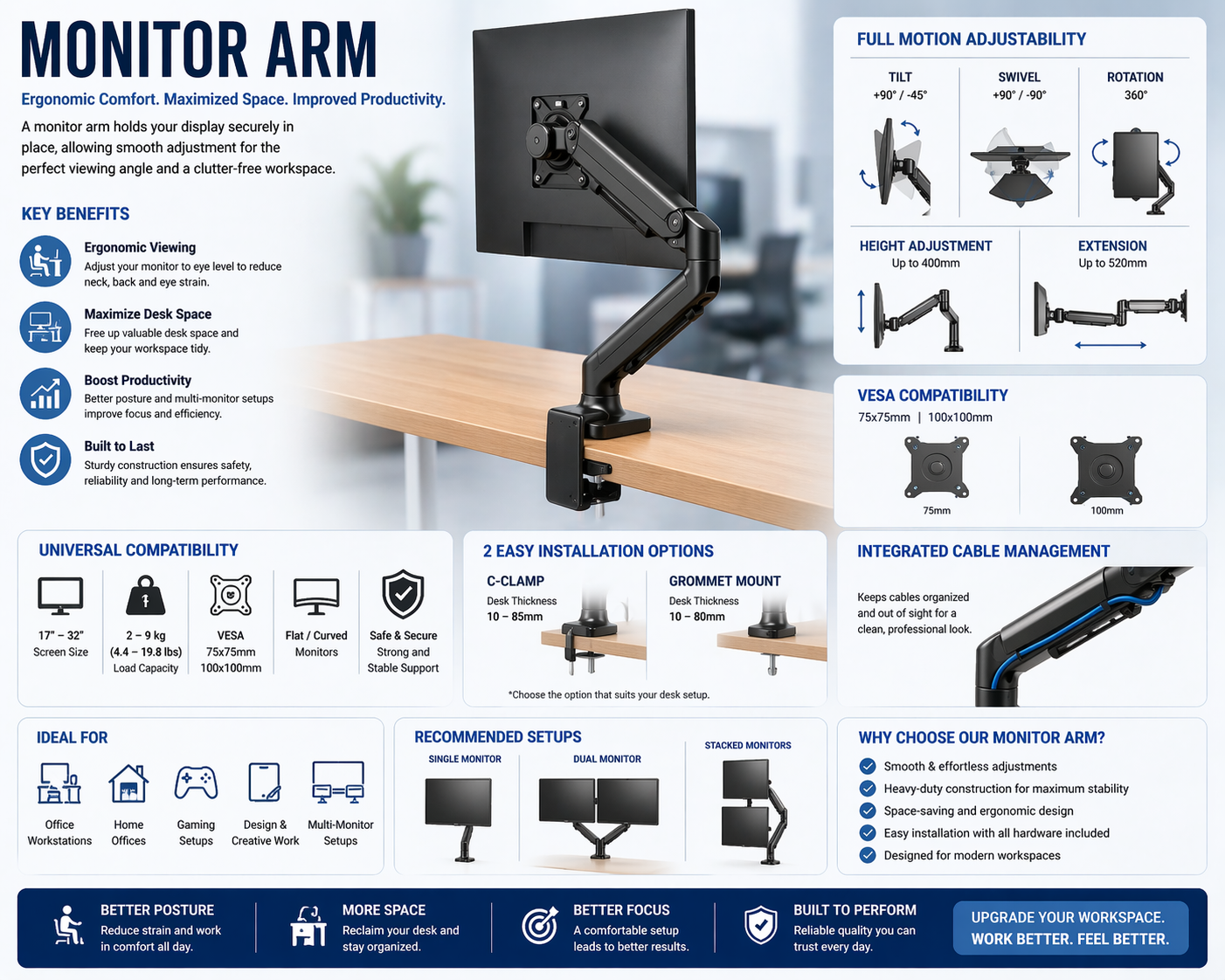 As the workplace evolves, the importance of ergonomics cannot be overstated. The Monitor Arm Market is set to grow significantly, with projections indicating a market size of $4.152 billion by 2024 and reaching $8.499 billion by 2035. The compound annual growth rate (CAGR) for this sector is anticipated to be 6.73%. Ergonomic monitor arms are not merely functional accessories; they are becoming vital components in creating healthier work environments that enhance productivity. The increasing emphasis on ergonomics is influencing consumer preferences, driving the adoption of innovative solutions that adjust to individual needs and promote optimal work posture.