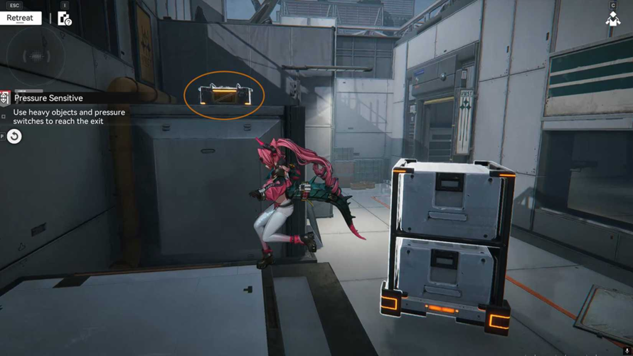 Не доставляйте большой парящий ящик сразу.\nИспользуйте его как платформу, чтобы добраться до второго сундука с чувствительной к давлению плитой в Arknights: Endfield.