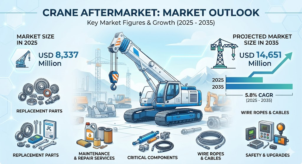 the global crane aftermarket is undergoing a structural transformation as industries increasingly prioritize equipment uptime, safety, and lifecycle optimization. Driven by rising demand for maintenance, spare parts, and refurbishment services across construction, mining, oil & gas, and logistics sectors, the crane aftermarket is emerging as a critical pillar of industrial efficiency.