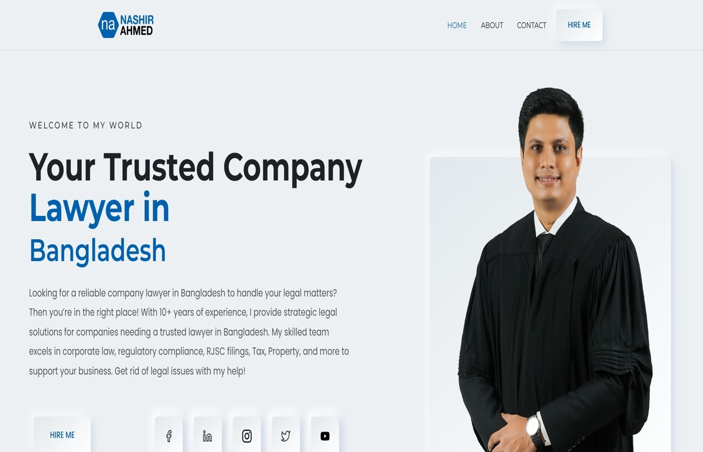 A best company lawyer in Bangladesh ensures businesses operate within legal frameworks while mitigating risks. Nashir Ahmed Kushol offers comprehensive legal services in company registration, corporate governance, contracts, intellectual property, dispute resolution, and strategic business advisory, making him a trusted partner for enterprises of all sizes.